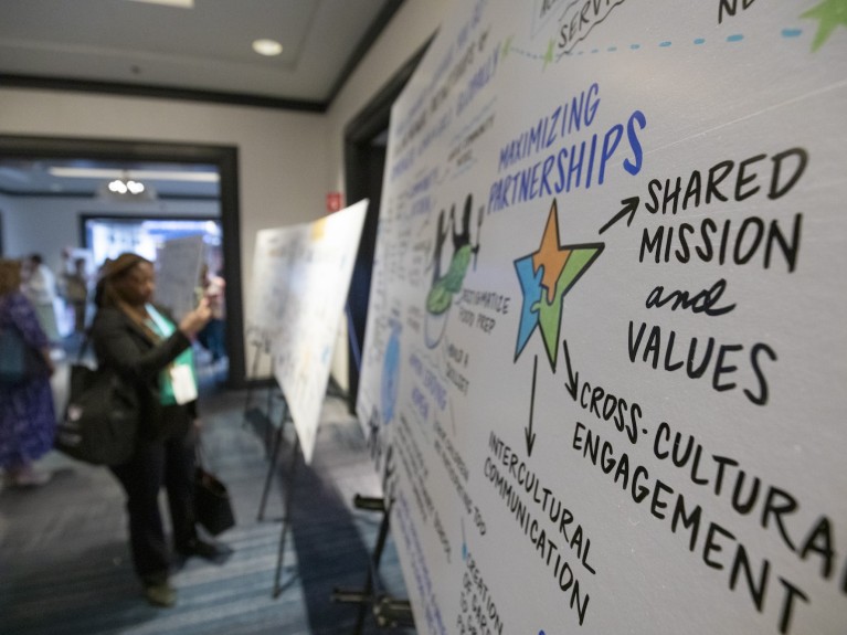 - Rob DiMartino, Finalsite, with Luke Myers (Emma Willard), Patrick Coyle (Carrollton School of the Sacred Heart), and Bethany Stotler (Foxcroft School) in a panel discussion about marketing and engagement.